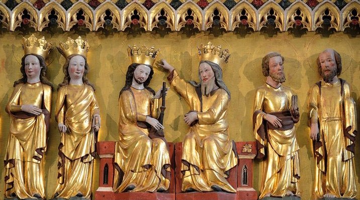 Foto: Altarschrein im thüringischen Weißensee, Maria nachträglich mit Bart versehen und zu Jesus umgestaltet: https://www.evangelische-zeitung.de/beim-barte-der-maria